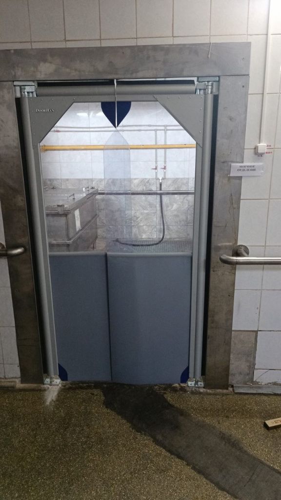 Схема установки распашные пленочные маятниковые двери