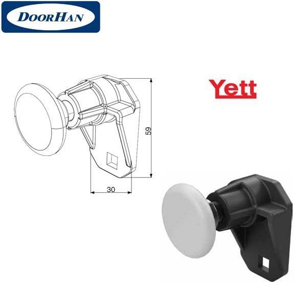 Входит в состав комплектации секционных ворот Yett. Устанавливается на боковую опору Y313N и нижний угловой кронштейн Y314N. Предназначен для фиксации ролика 25030.